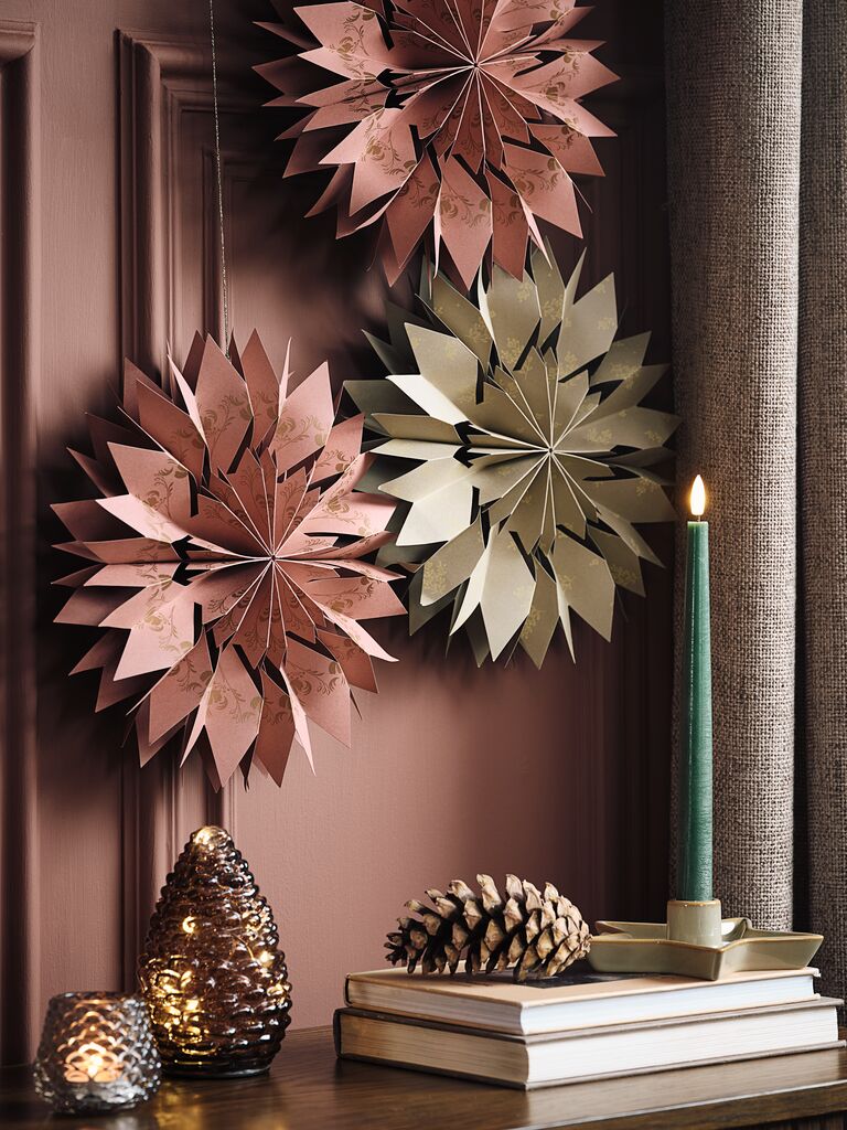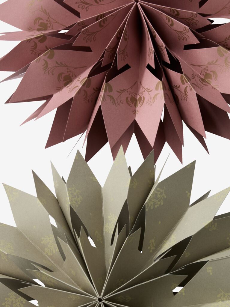 Božična zvezda iz recikliranega papirja FSC®, za obešanje na okno ali s stropa. V vsak prostor vnese tradicionalno in prijetno vzdušje. Na voljo v pepelnato zeleni ali pepelnato roza barvi. Ø30xG7 cm