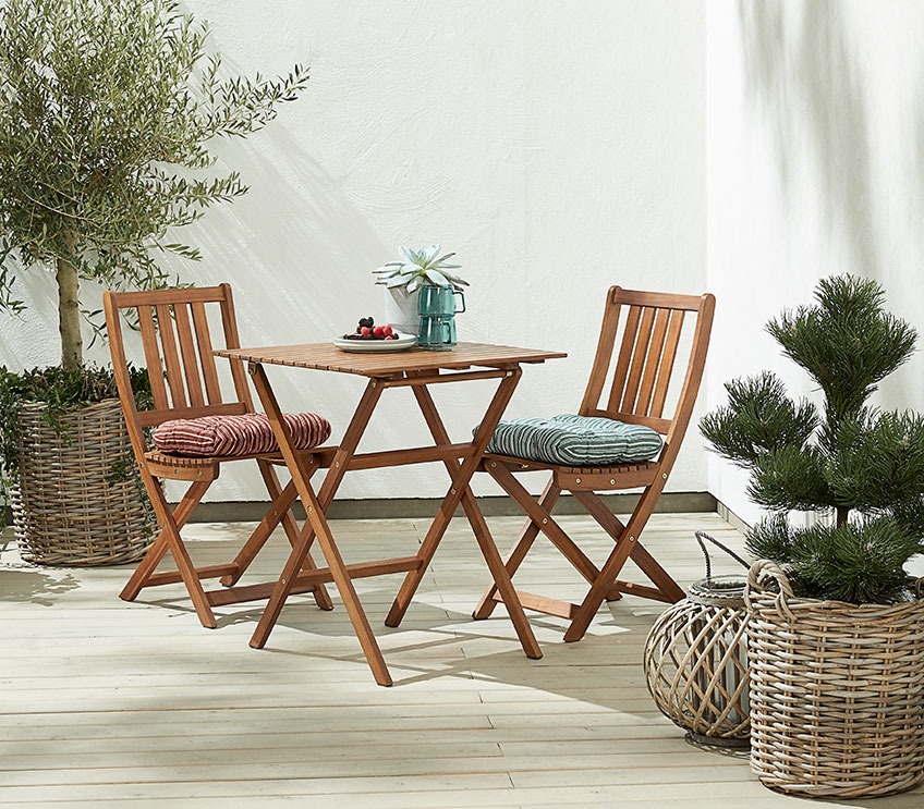 Mogoče je vaše vrtno pohišvo preveliko za vaš zunanji prostor. Razmislite o tem, da bi bila za vas boljša izbira bistro vrtni set z manjšo vrtno mizo in nakladljivimi stoli ali celo zložljiv vrtni komplet .