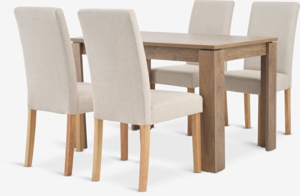 VEDDE D120 miza divji temni hrast + 4 TUREBY stoli bež