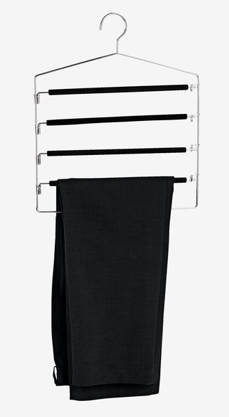 Obešalnik iz kroma za 5 parov hlač. Pameten način za maksimalno izkoriščenost prostora v omari ter za urejeno hrambo hlač brez gubanja. D40xV47 cm