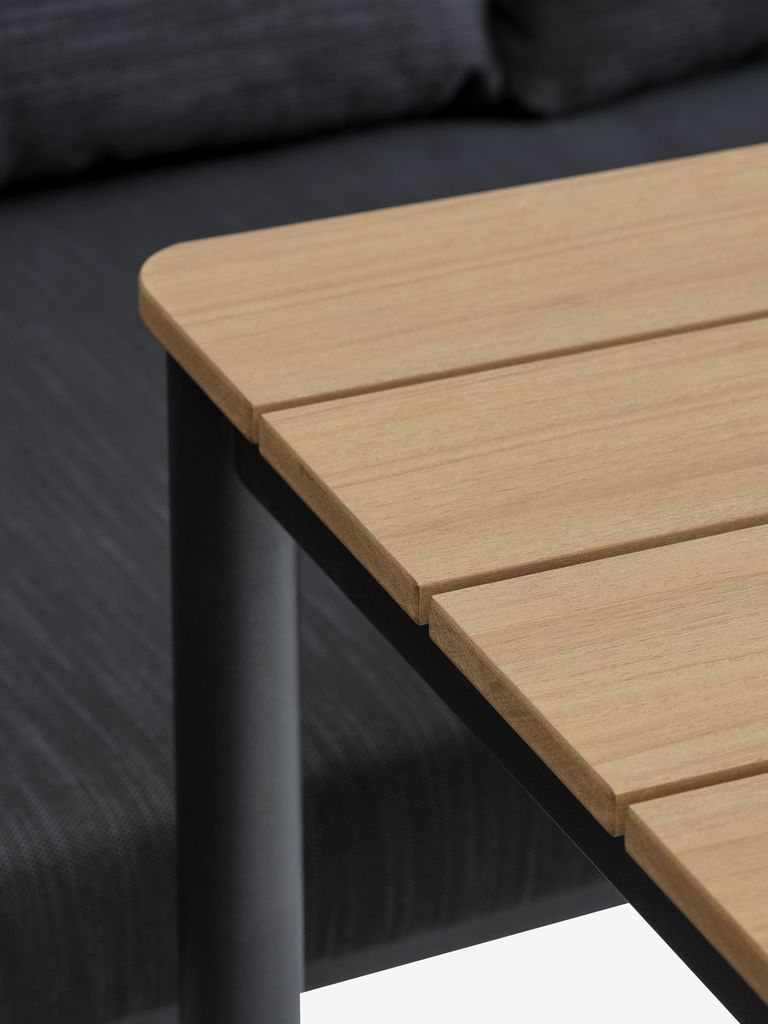 | Material | Okvir: jeklo, Vrh mize: Umetni les je sintetični material, ki ne potrebuje vzdrževanja in ima naravno strukturo lesa. Narejen je iz plastike, kot je polistiren, ki je trpežen material, odporen na vremenske vplive. Umetni les je zaščiten pred UV-žarki, kar zagotavlja obstojnost barve na površini. |
